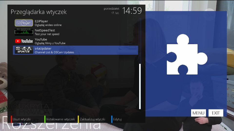 JEŻELI NIE MA WTYCZKI, NALEŻY ZAINSTALOWAĆ CAŁE OPROGRAMOWANIE OD NOWA ALBO ZAINSTALOWAĆ WTYCZKĘ. INSTRUKCJA PONIŻEJ – TYLKO DLA OPENATV.