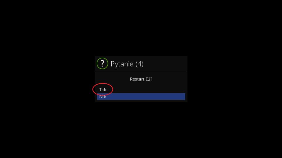 Wybieramy oscama, naciskamy OK , restart (zazwyczj żółty lub czerwony)