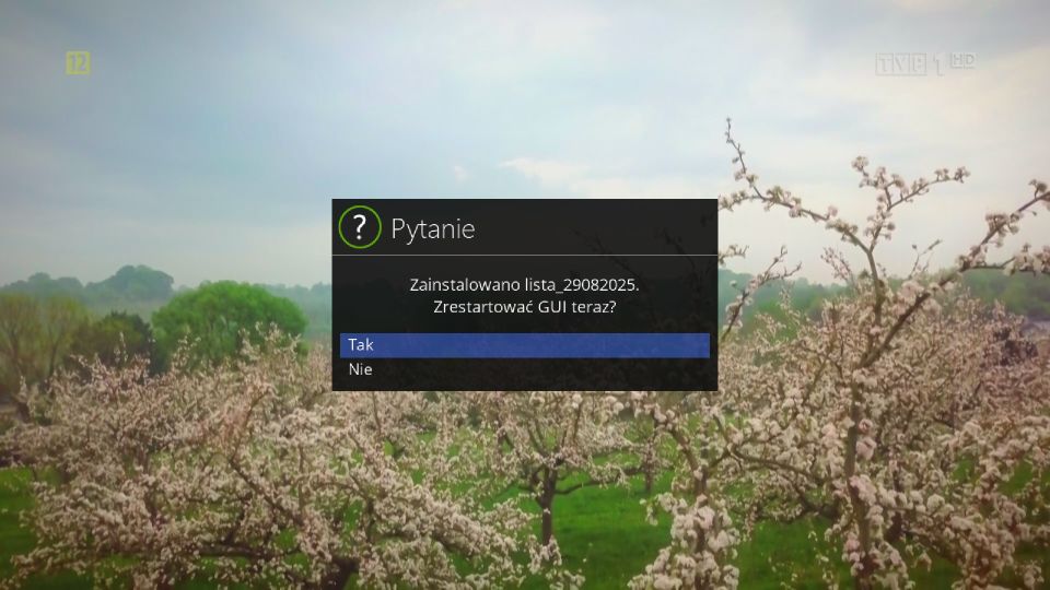 UWAGA WAŻNE !!!! ZRESTARTUJ DEKODER LUB INTERFEJS DEKODERA USTAWIENIE WTYCZKI UPGRADELIST