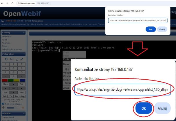 Wgranie pluginu np. oscama nbox w innych dekoderach podobnie