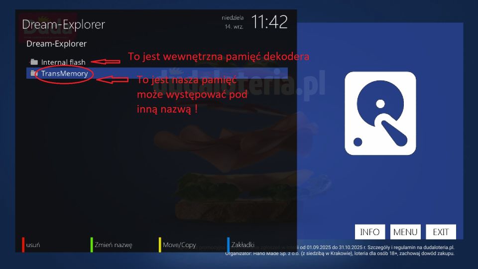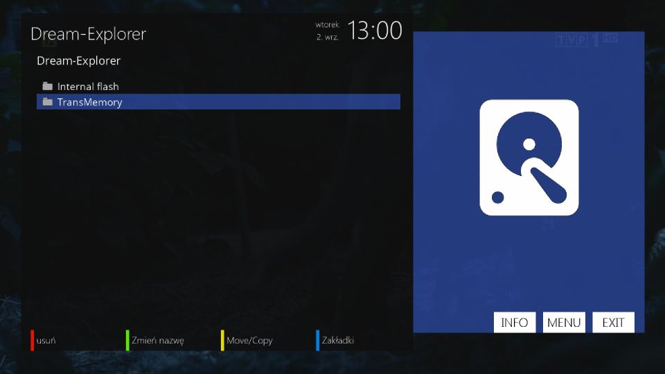 Potem Menu(opt),Wtyczki(pluginy),DreamExplorer ,lista urzadzen...wybieramy naszego pendriva (np. trans Memory itp) i plik