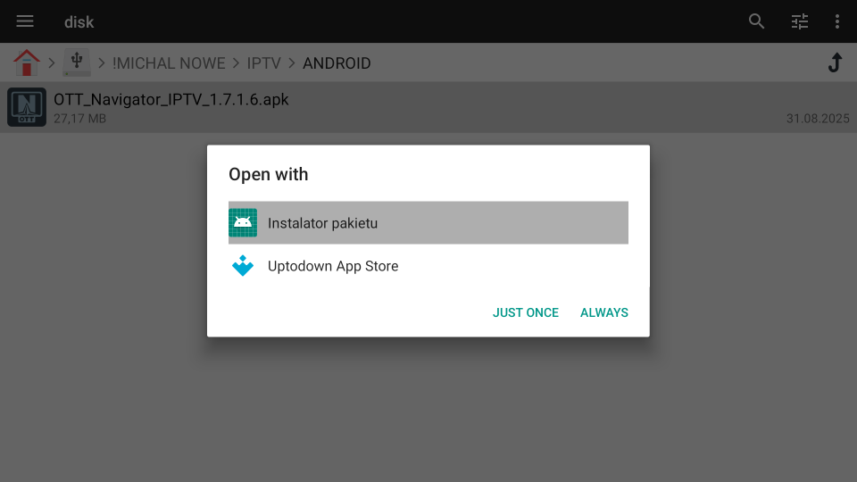 ANDROID FILE MANAGER INSTALACJA APLIKACJI / INSTALACJA OTT NAVIGATOR