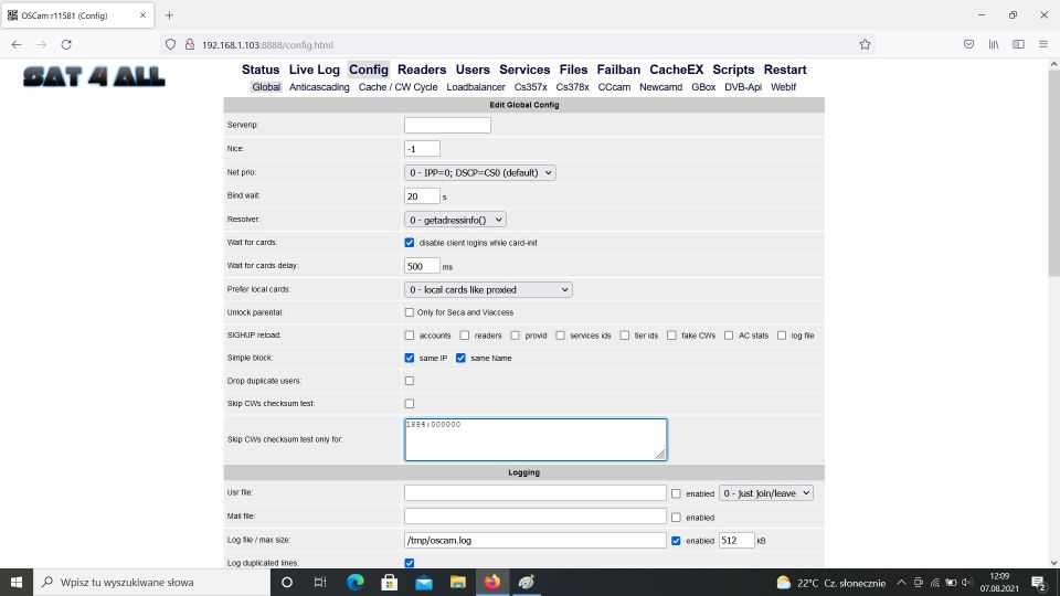 I. VAR ->KEYS -> OSCAM_SCI0 ALBO CONFIG -> OSCAM.SERVER