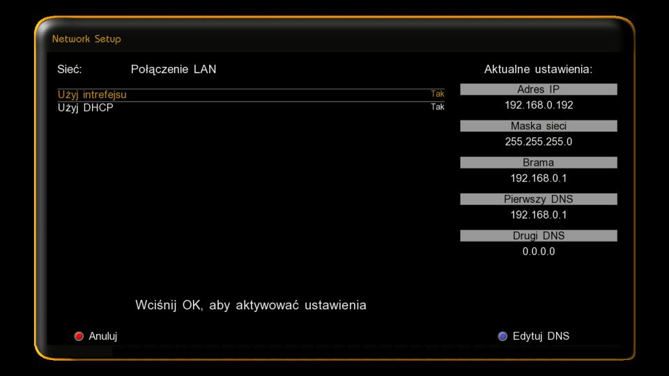 JEŻELI ADRES IP JEST N/A -NIEZNANY RESTARTUJEMY SIEĆ ALBO DEKODERA I SPRAWDZAMY JESZCZE RAZ