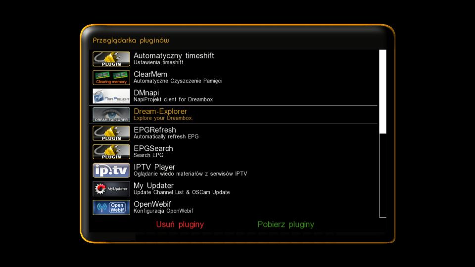 dreamexplorer W podobny sposób jak przy instalacji wtyczek używamy DreamExplorera