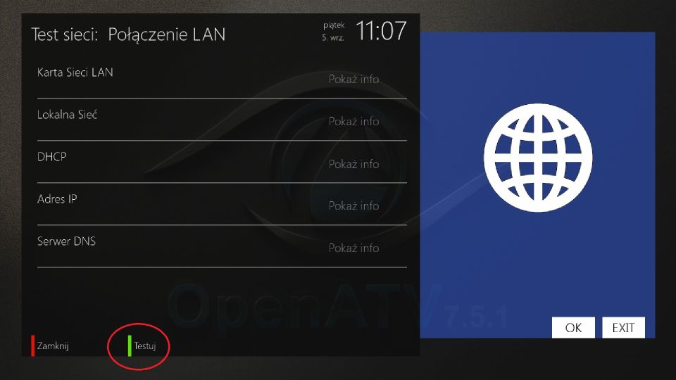 SPRAWDZ POŁĄCZENIE Z SIECIĄ (Internetem) TEST SIECI MOŻE BYĆ PROBLEM Z INTERNETEM.